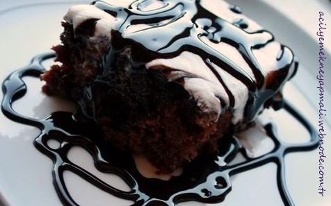 30 dakika sonra alın ve sıcak kekin üstüne 2 su bardağı sütü her yerine gezdirerek boşaltın. Sonra soğumaya bırakın.